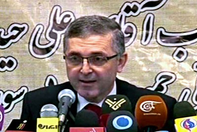 قال الدكتور حيدر وزير الدولة لشؤون المصالحة الوطنية في مؤتمر صحفي عقده في العاصمة الإيرانية طهران إن الجميع يعلم أن لإيران دورا فاعلا لمحاولة تظهير عملية سياسية تساعد السوريين على الخروج من أزمتهم وان السوريين أنفسهم قيادة وشعبا متجهون باتجاه الحل السياسي وليس أي حل آخر.