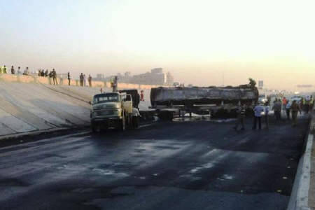 ونقلت وسائل إعلام سعودية، عن شهود عيان، أن ناقلة وقود انقلبت واشتعلت خلال الساعات الأولى من فجر اليوم، بعد اصطدامها بسيارة أخرى عند كبري خالد بن الوليد امتداد الدائري الشمالي في الرياض.