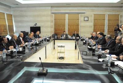 التقت اللجنة الوزارية المكلفة متابعة تنفيذ البرنامج السياسي لحل الأزمة في سورية برئاسة الدكتور وائل الحلقي رئيس مجلس الوزراء أعضاء مجلس إدارة الرابطة السورية للأمم المتحدة برئاسة الدكتور جورج جبور رئيس الرابطة.