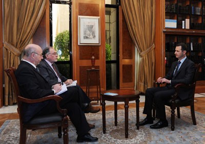 الأسد وصف معارضيه بأنهم "جماعات وعصابات مختلفة، عددها ليس بالعشرات بل بالمئات... هم خليط ولكل مجموعة قائد محلي" وتساءل الأسد عمن "يستطيع توحيد يمكن توحيد الآلاف من الناس؟ وقال "لا يمكننا مناقشة أي جدول زمني مع طرف إذا كنا لا نعرف من هو". وأوضح الأسد أن إسرائيل تدعم الجماعات الإرهابية بطريقتين، الأولى تكمن في تقديم الدعم اللوجيستى لهم، والثانية عن طريق تحديد المواقع التي سيهاجمونها وكيفية مهاجمتها. وأكد في اللقاء الذي نشرت مقتطفات منه صحيفة الغارديان البريطانية أنه يرحب بمحاولات الحوار، لكنه يرى أن الدول الغربية تبحث عن سبل لتأجيج العنف، بدلا من وقفه وأعرب عن اعتقاده بأن الدول الغربية تسعى للإطاحة بنظامه بغض النظر عن عدد القتلى.