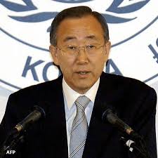 وشدد كي مون على أن "استعمال الاسلحة الكيميائية هو انتهاك خطير للمعايير الدولية"، مندّداً بأقصى العبارات باستخدام الاسلحة الكيميائية في سورية، قائلاً "علينا فعل ما بوسعنا لحماية الناس من هذه الاسلحة".