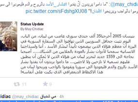 علقت الإعلامية مي شدياق على عملية إقتراع اللاجئين السوريين اليوم للإنتخابات الرئاسية في سورية عبر السفارة في اليرزه - لبنان بالقول عبر حسابها: