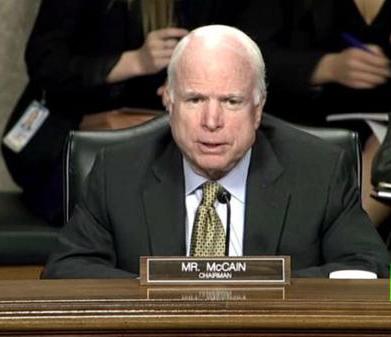 احتجت مجموعة من معارضي الحرب، تطلق على نفسها اسم "الشفرة الوردية"، خلال جلسة استماع لرئيس لجنة خدمات التسليح بمجلس الشيوخ الأمريكي "جون ماكين".