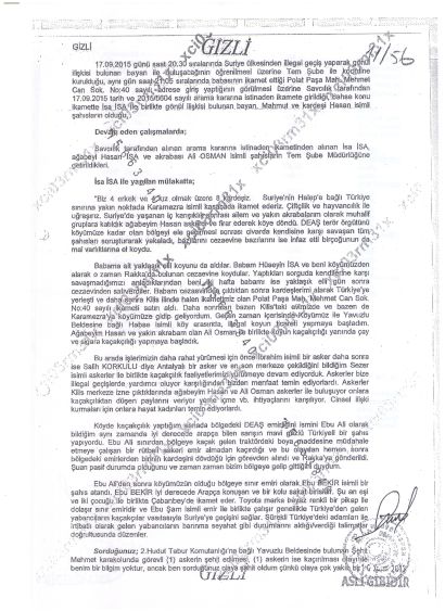 وكشفت صحيفة «إفرنسيل» عن نسخة من تقرير استخباراتي، يحمل علامة «سري»، ويحوي اعترافات متهم في قضية الاغتيال والاختطاف المذكورة، حيث يعترف بمشاركته في عمليات تهريب الأشخاص والبضائع لصالح تنظيم «داعش» في منطقة كيلليس، المحاذية للحدود الإدارية لمحافظة حلب. وأضاف أن الجنود كانوا يساعدونه بعد الاتفاق على رشوة معينة، ثم لا يلبثون أن يذهبوا إلى مركز مدينة كيلليس للالتقاء بشقيقه الذي يسلمهم المبلغ المتفق عليه، كما كان يؤمن لهم عاهرات لمضاجعتهن.