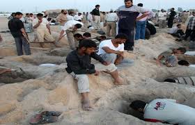 أعلن المحامي العام الأول بحلب فاضل النجار أنه من بين الجثث الـ20 التي تم اكتشافها أمس الاول 5 أطفال أعمارهم تراوحت بين 3 إلى 11 سنة تمت تصفيتهم بطلقات نارية في الرأس مضيفاً: إنه من بين الجثث أربع نساء وبقية الجثث من الذكور معظمهم شباب.