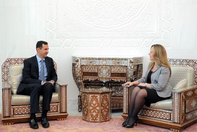 شدد الرئيس السوري بشار الأسد خلال لقائه اليوم مع السيدة ترينيداد خيمينيث وزيرة الشؤون الخارجية والتعاون الاسبانية على أن السلام كل لا يتجزأ وأنه لا يمكن أن يكون حقيقياً ودائماً ما لم يضمن عودة الأرض والحقوق كاملة إلى أصحابها الشرعيين.