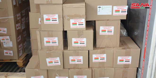 مقدمة من جمهورية بيلاروس تضم مستحضرات طبية ومحولات كهربائية ومواد غذائية سيتم توزيعها