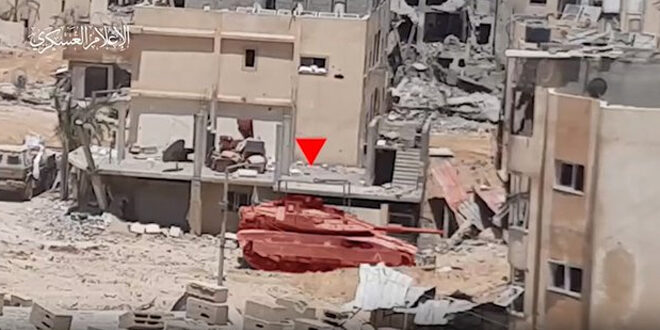 ومصاب، وبقذيفة “الياسين 105” دبابة للاحتلال من نوع “ميركافا 4” بحي تل