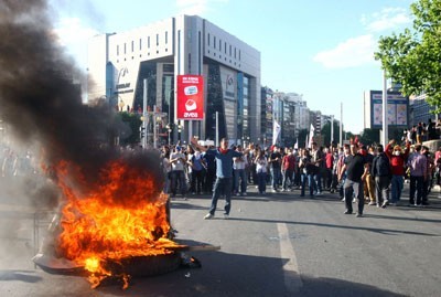 كما دعا المتظاهرون الشرطة التركية إلى وقف العنف ووصفوا رئيس حكومة حزب العدالة والتنمية بـ "أردوغان القاتل".