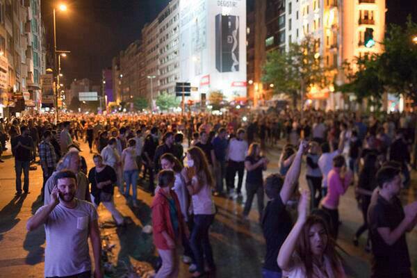 تظاهر آلاف الأتراك مساء اليوم مجددا قرب ساحة تقسيم باسطنبول ضد حكومة رجب طيب أردوغان التسلطية ورفضا لقرار الإفراج عن شرطي متهم بقتل متظاهر.