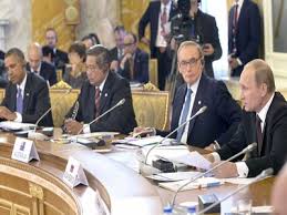 أوباما يتمسّك بضرب سورية وبوتين بمساعدتها هولاند لا يتحرّك عسكرياً قبل تقرير المفتشين أخفق الرئيسان الأميركي باراك اوباما والروسي فلاديمير بوتين، اللذان عقدا اجتماعاً ثنائياً استمر 20 دقيقة على هامش قمة دول مجموعة العشرين في مدينة بطرسبرج الروسية، في التوصل إلى تفاهم على الأزمة السورية. ورفض اوباما الرضوخ لضغوط تعرض لها للتخلي عن عزمه على توجيه ضربة عسكرية إلى سورية رداً على تقارير تحدثت عن استخدامها سلاح كيميائي في ريف دمشق في 21 آب الماضي، بينما ذكر بوتين بان استخدام القوة ضد دولة ذات سيادة محظور في القانون الدولي من دون تفويض من مجلس الأمن، وقال إن روسيا ستساعد سورية إذا تعرضت لضربة عسكرية، وقت كانت البحرية الروسية ترسل سفينة إنزال إلى المياه المقابلة للسواحل السورية.