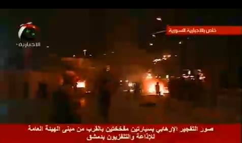 في عمل إرهابي استهدف مبنى الإذاعة والتلفزيون السوري دوى انفجار كبير قرب مبنى الهئية العامة للإذاعة والتلفزيون.