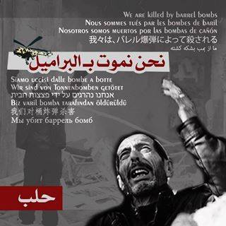 نشرت منظمات تدعم المسلحين في سورية الذين يقاتلون الجيش العربي السوري بيانا اليوم تناقلته مواقعهم زعموا فيه ان مناطق سكنية في حلب تعرضت للقصف بالبراميل المفتجرة .