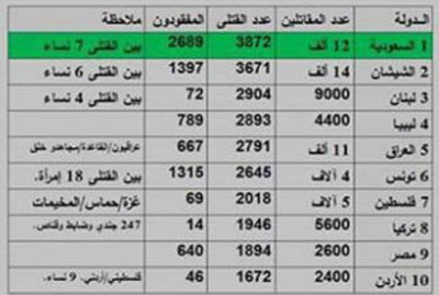 نشرت مؤسسات إحصائية غربية دراسة إحصائية كشفت عدد الأجانب الذين يقاتلون في سورية إلى جانب المجموعات الإرهابية المسلحة وعدد قتلاهم وعدد المفقودين منهم رجالا ونساء.