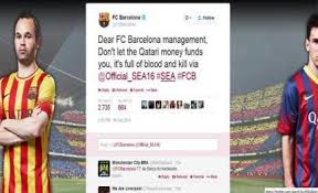 أعلنت مجموعة تابعة للجيش السوري الإلكتروني مسؤوليتها الكاملة عن عملية اختراق الحساب الرسمي لفريق نادي برشلونة الإسباني على موقع تويتر
