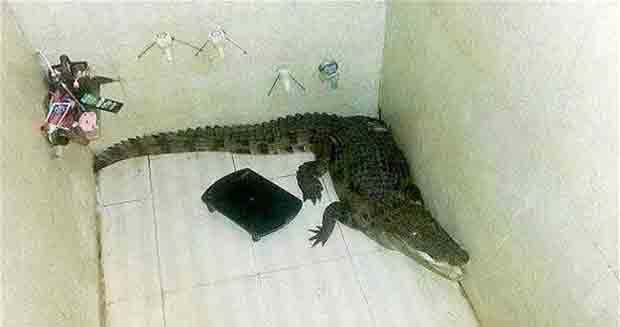 وفي التفاصيل، فإن كالبيش باتيل (41 عاماً) دخل للإستحمام، لكنه فوجئ بوجود تمساح ضخم، فوقف مكانه وراح يحدّق به ليكتشف ما إذا كان على قيد الحياة، وإذا بعينه ترمش، عندها أقفل الباب بقوة، وهربتبأقصى سرعة.