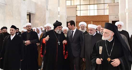 وعبر الرئيس الأسد عن تقديره للدور الهام الذي يقوم به رجال الدين في تعزيز المصالحات الوطنية ونشر ثقافة الحوار بين جميع السوريين.