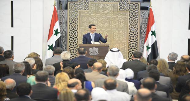 - الكلمة نجحت برسم معالم مرحلة جديدة في المواجهة الدائرة في سورية وعليها منذ خمس سنوات، فميدانياً هي إيذان الهجوم الشامل حتى تحرير كامل الأراضي السورية التي تقع تحت سيطرة المجموعات الإرهابية بشراكة كاملة مع المقاومة، وسياسياً هي إعلان أولوية الحرب على الإرهاب كمدخل للعلاقات الدولية والإقليمية وعنوان حاكم للحلّ السياسي الداخلي، والمنطلق هو التغيير الذي دخلته المنطقة مع التفاهم حول الملف النووي الإيراني الذي يثبت الأسد قراءته المشتركة لمفاعيله مع ما قاله السيد حسن نصرالله، عن مؤشرات المزيد من القوة لحلف المقاومة، والمؤشرات هي لاتجاه نحو ملاقاة المتغيّرات من القوى الدولية والإقليمية تحت عنوان أولوية الحرب على الإرهاب كسبب يكفي لتبرير التموضع الجديد لهذه القوى التي يمنحها الرئيس الأسد الفرصة، ويضع العنوان واضحاً بلا مواقف عدائية من أحد إلا بقياس جديته في الانخراط تحت هذا العنوان.