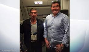 وظهر الراكب في صورة تشع بالسعادة مع خاطف الطائرة الذي عرفته السلطات فيما بعد باسم سيف الدين مصطفى.