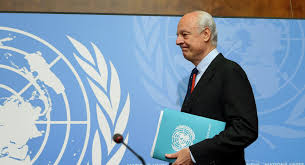 ويحاول دي ميستورا التوسط في اتفاق سلام بين الأطراف المتحاربة في سوريا.