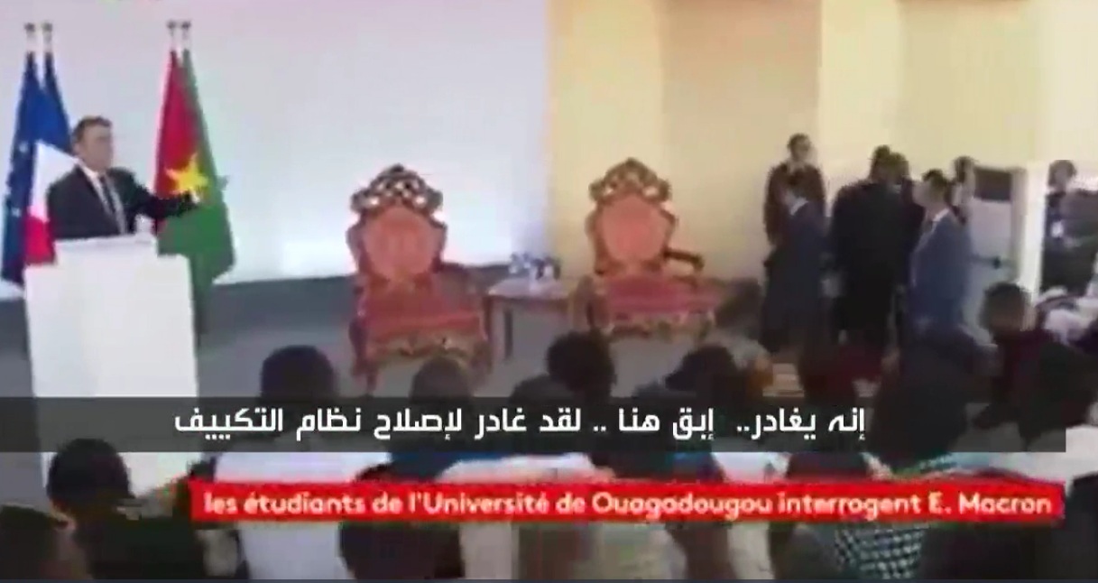 وقال ماكرون "تخاطبونني وكأنني ما زلت أمثل دولة مستعمرة. أنا لا أريد الاهتمام بمشكلة الكهرباء في جامعة بوركينافاسو هذا من عمل الرئيس إنه يغادر.. ابق هنا.. لقد غادر لإصلاح نظام التكييف".