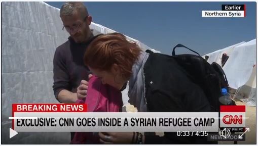 في استخفاف لعقول البشر والمتابعين عرضت قناة الـ CNN الأمريكية تقريراً ظهرت فيه مقدمة البرنامج " والتي تعرف بتغزلها بداعش" وهي تشم رائحة الألبسة في طريقها للبحث عن آثار كيميائية في سورية.