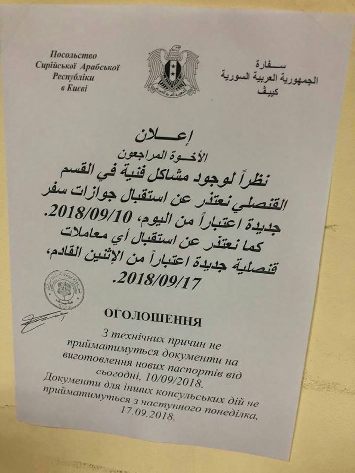 وذكرت مصادر أن بإمكان المواطنين السوريين في أوكرانيا إجراء معاملاتهم القنصلية عبر القنصلية الفخرية في أوديسا.