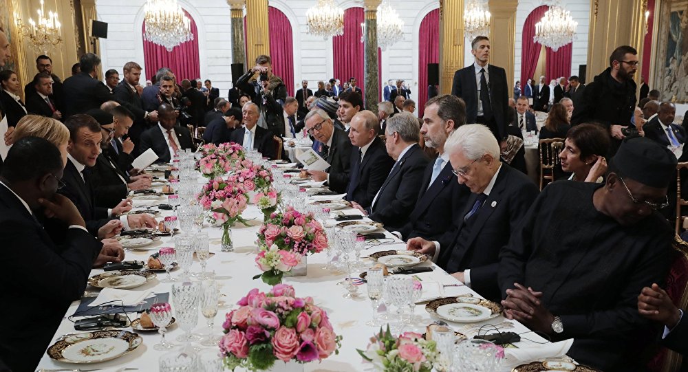 وقال مصدر من البعثة الروسية لوكالة "سبوتنيك": "في الواقع، غيّر قصر الإليزيه مكان جلوس القادة على المائدة قبل بدء وجبة الإفطار. وفي النهاية، جلس الرئيسان الروسي والأمريكي فلاديمير بوتين ودونالد ترامب في مواجهة بعضهما البعض ولم تتح لهما الفرصة للتحدث".